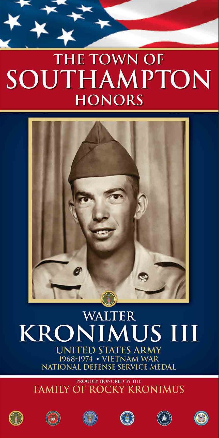 Walter “Rocky” Kronimus III was born May 17, 1944, in Garden City to Elizabeth Becker and Walter Kronimus Jr. He married Lucia Leone on April 9, 1967. They lived in Levittown until he was drafted into the U.S. Army. He served in Fort Knox, Kentucky and was later stationed in Vietnam. Upon his return from Vietnam, he, along with his father and father-in-law, built the house in which he raised his family and lived for 45 years.