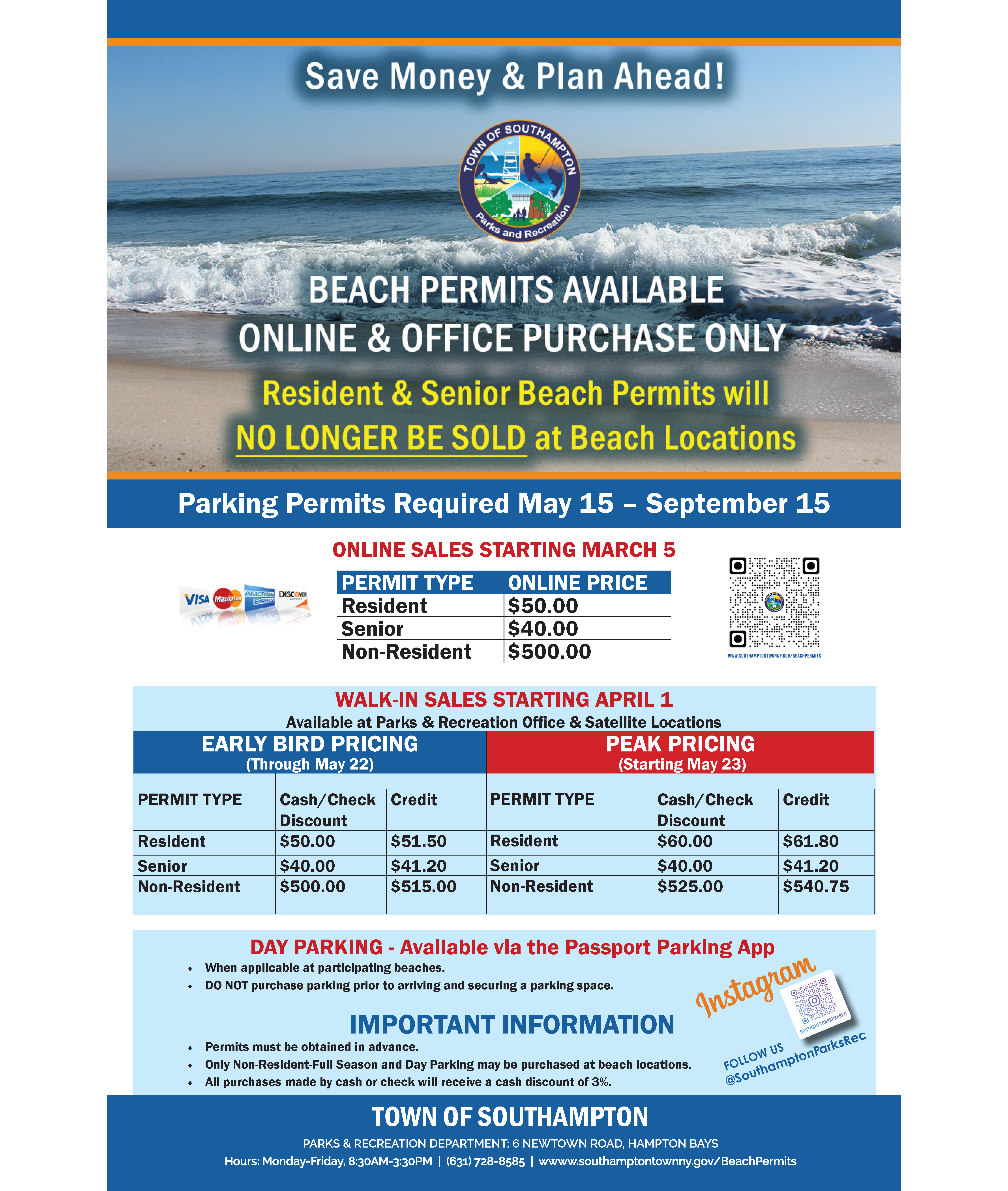 Available 24/7 Online: www.southamptontownny.gov/beachpermits